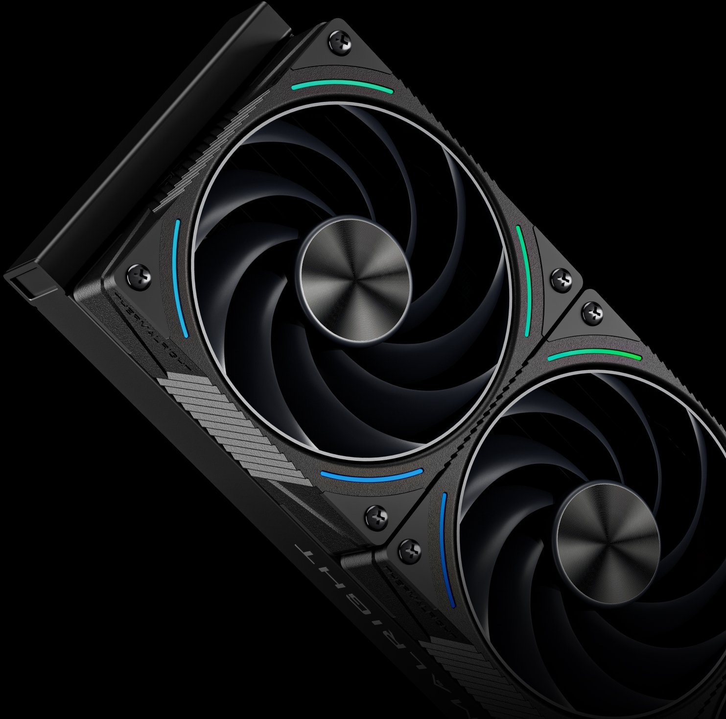 W chłodzeniu wodnym Thermalright Rainbow Vision 360 Turbo ARGB BLACK mamy aż trzy wentylatory TL-K12-X28-R9 Turbo. Stanowią one jeden z najmocniejszych elementów całej konstrukcji. Pracują z prędkością do 3000 RPM, generując imponujący przepływ powietrza 120.38 CFM oraz ciśnienie statyczne 4.93 mm H2O. Tak wysoka wydajność sprawia, że chłodzenie skutecznie rozprasza ciepło z gęstego radiatora nawet w najbardziej wymagających warunkach. Poziom hałasu wynosi maksymalnie 44.7 dBA, co jest typowe dla wentylatorów o tak wysokiej prędkości i charakterystyce. Model wykorzystuje także łożyska Dual Ball Bearing, które zapewniają trwałość, stabilność oraz odporność na intensywną pracę.