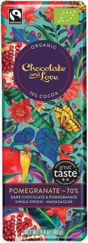 CHOCOLATE AND LOVE SZWAJCARSKI BATON GORZKA CZEKOLADA Z GRANATEM FAIR TRADE BIO 40 g - CHOCOLATE AND LOVE