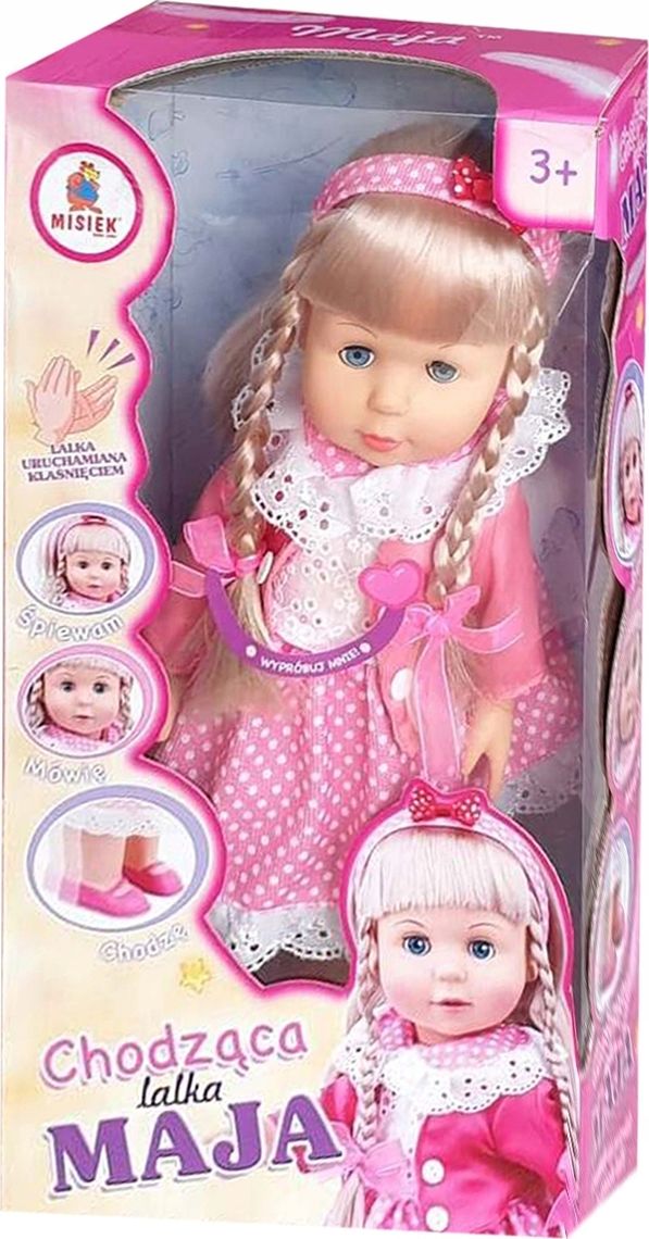 Laleczka która sama chodzi i ślicznie śpiewa. Jej długie i mięciutkie włosy idealnie nadają się do czesania. Wystarczy, że klaśniesz w dłonie a Maja ożyje. Będzie chodzić i naprawdę mówić.