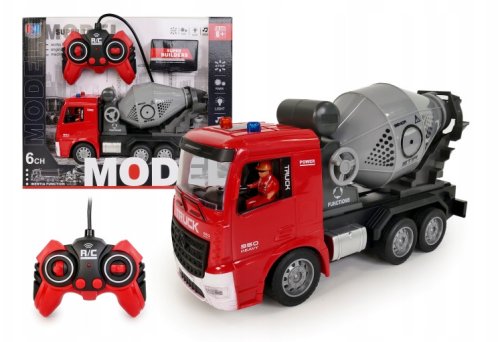 Pojazd wyposażony jest w obracany bęben betoniarki, który można kontrolować za pomocą pokrętła. Dodatkowo, ciężarówka oferuje pełny zakres jazdy, co umożliwia swobodne manewrowanie w różnych warunkach. Użytkownicy mogą również dostosować zbieżność kół, co zwiększa precyzję jazdy.