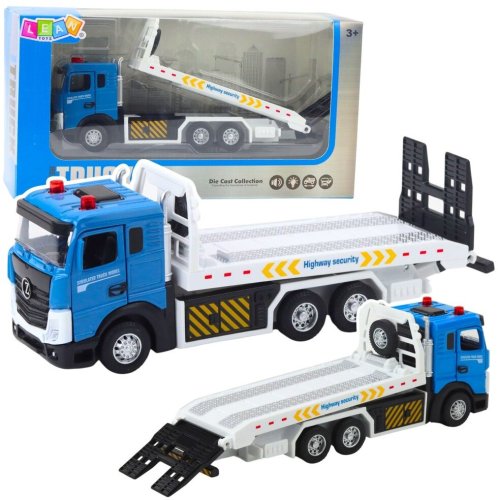 Ciężarówka transportowa laweta to realistyczna zabawka stworzona dla dzieci, które interesują się pojazdami użytkowymi i pracą służb drogowych. Model odwzorowano z dużą dbałością o szczegóły ? od charakterystycznych elementów konstrukcyjnych, po realistyczny wygląd kabiny i platformy załadunkowej. Solidne wykonanie oraz wyrazista kolorystyka sprawiają, że pojazd świetnie prezentuje się podczas zabawy i zachęca do kreatywnego odgrywania scenek.