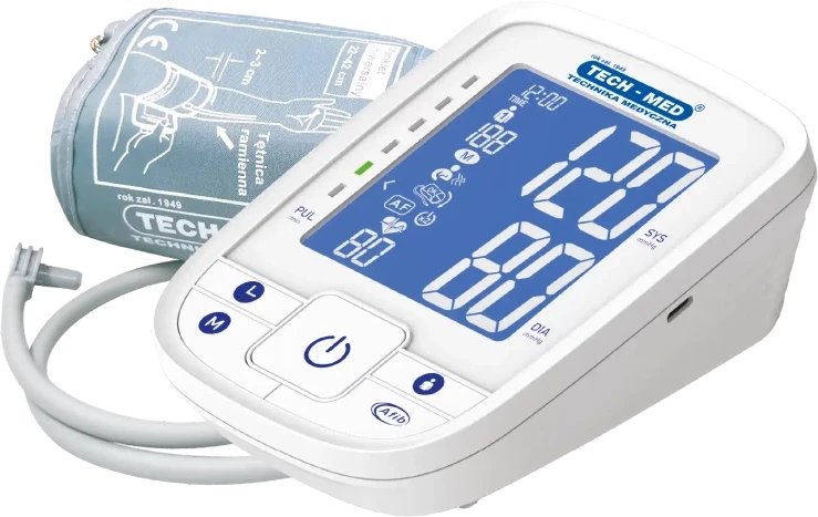 Ciśnieniomierz TMA-INTEL 11 TECH-MED z funkcją mowy, wykrywania migotania przedsionków AF, pomiar podczas pompowania, pamięć 2x120, 22-42 cm