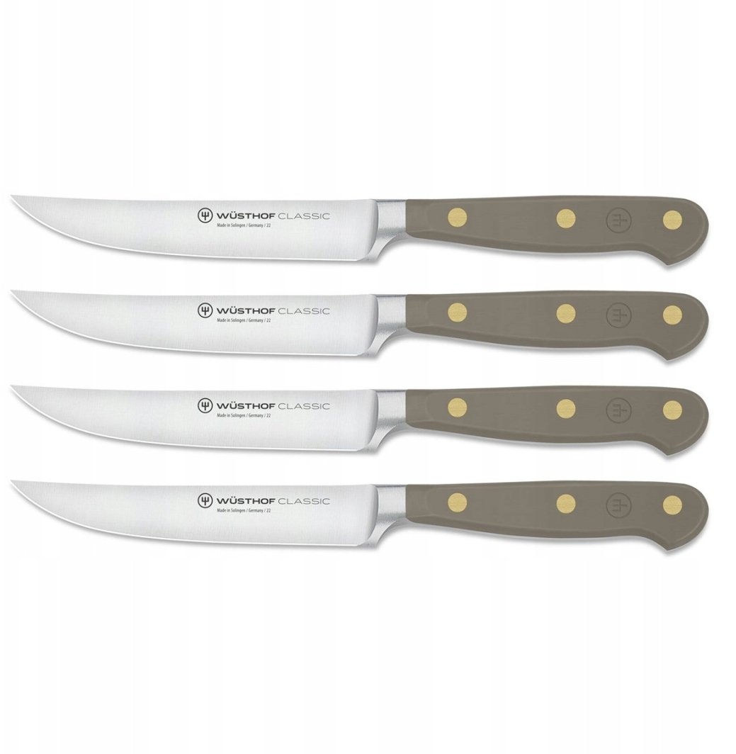 Zestaw noży stekowych Wüsthof Classic Colour to doskonałe połączenie stylu i funkcjonalności. Składający się z 4 noży o długości ostrza 12 cm, ten zestaw został stworzony z myślą o łatwym krojeniu różnorodnych rodzajów mięsa, od soczystych steków po delikatne piersi z kurczaka. Dzięki ponadczasowemu wzornictwu, noże te wprowadzają klasę do każdej kuchni.