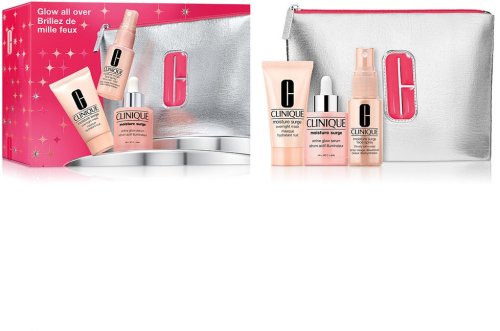 Clinique Glow All Over zestaw aktywne serum zapewniające blask 30ml + maseczka intensywnie nawilżająca 30ml + mgiełka do twarzy