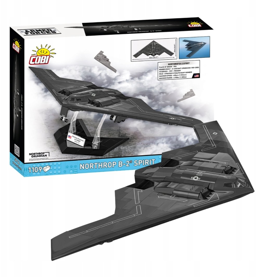 Model B-2 Spirit wyróżnia się precyzyjnym wykonaniem oraz ruchomymi elementami, które dodają mu realizmu. Otwierana kabina, ruchome koła z gumowymi oponami oraz otwierany przedział bombowy, który pomieści 8 pocisków Mark 82, to tylko niektóre z funkcji, które sprawiają, że model jest wyjątkowy. Dodatkowo, zestaw zawiera specjalnie zaprojektowane klocki, które wiernie odwzorowują skomplikowany kształt kabiny samolotu.