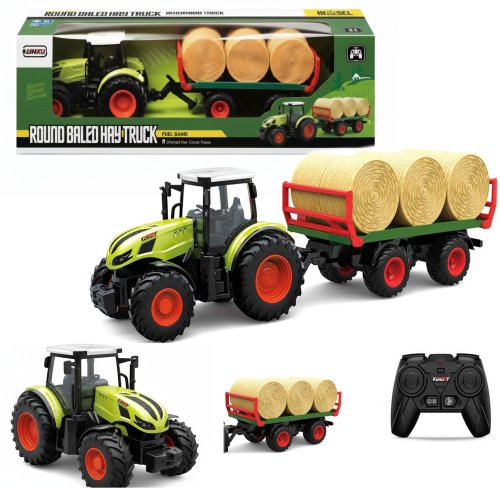 Coil zdalnie sterowany traktor na pilota z przyczepą i belami słomy