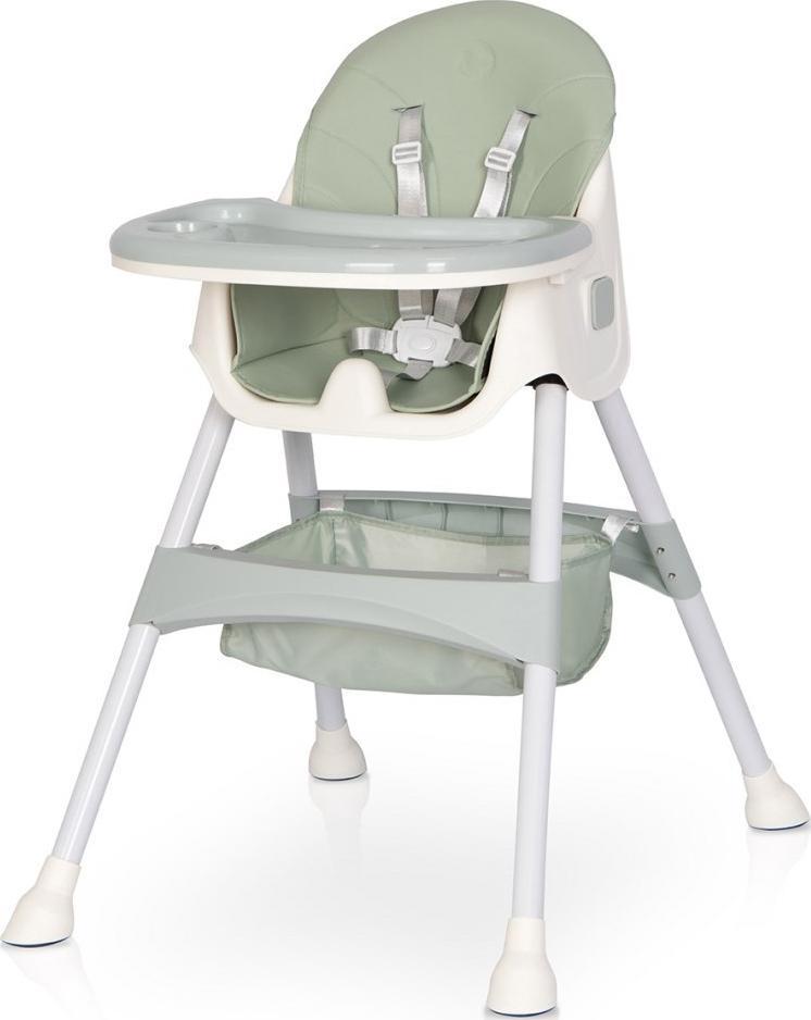 Wysokie wolnostojące krzesełko do karmienia - W tej konfiguracji krzesełko posiada długie nogi oraz zamontowaną tackę. Wysokie krzesełko zapewnia większą wygodę rodzicowi karmiącemu dziecko oraz sprawia, że dziecko znajduje się na podobnej wysokości co jego rodzice zasiadający przy stole. Dzięki regulowanej tacce, krzesełko nie musi być ustawiane przy stole, więc wygodnie nakarmisz je w każdej sytuacji.