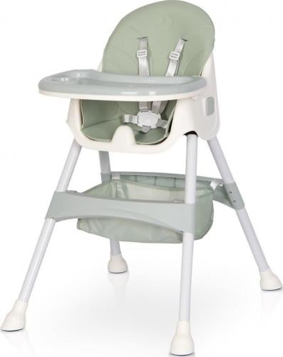 Niskie wolnostojące krzesełko do karmienia - W tej konfiguracji krzesełko posiada krótkie nogi oraz zamontowaną tackę. Podnóżek może być zamontowany lub zdemontowany w zależności od wzrostu dziecka. Krzesełko w takiej formie pozwala wygodnie nakarmić nieco większe dziecko, które już samodzielnie chodzi. Dzięki możliwości zapięcia dziecka w pasy oraz zabezpieczenia go tacką, łatwiej będzie Ci utrzymać je w jednym miejscu na czas karmienia.