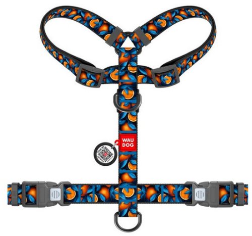 Collar WauDog Nylon Szelki nylonowe anatomiczne w kształcie litery H, z QR-paszportem, plastikowy fastex, wzór POMARAŃCZE, rozmiar M 20mm