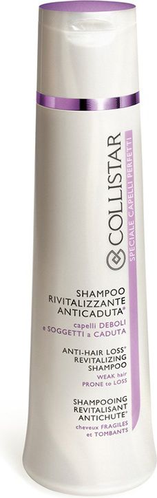 Collistar Anti Hair Loss Revitalizing Shampoo to rewitalizujący szampon przeciw wypadaniu włosów. Wspomaga hydrolipidową równwagę skóry głowy i włosów. Oligo Complex utrzymuje włosy zdrowymi, zwiększa ich siłę i odporność. Ekstrakt z drożdży stymuluje aktywność wzrostową komórek cebulki włosa. Biotechnologiczny kompleks protein wspomaga odżywianie komórek cebulki włosa. Kwasy lipoaminowe i silikon chronią przed zabiegami chemicznymi i gorącym powietrzem suszarki do włosów. Wyciąg z zielonej herbaty i witamina E, zwalcza wolne rodniki i chroni włosy przed starzeniem. Nawilża włosy i skórę głowy. Sprawia również, że włosy są wygładzone i zregenerowane. Regularne stosowanie sprawia, że włosy są bardziej elastylczne, odżywione i mniej wypadają.