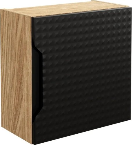 Górna szafka łazienkowa LUXOR BLACK 83-35-1DQ z dekoracyjnym frontem 3D Szafka łazienkowa LUXOR BLACK 83-35-1DQ to wyjątkowo ozdobna, wisząca szafka o kwadratowym kształcie, wykonana z solidnej płyty laminowanej w kolorze dębowym. Jej ozdobny front 3D z płyty MDF w głębokiej czerni nadaje łazience unikalnego charakteru. Szafka Qubik harmonizuje z innymi meblami z kolekcji LUXOR, tworząc wyrafinowaną kompozycję niczym jak w luksusowym hotelu. Praktyczne półki zapewniają dodatkowe miejsce na kosmetyki i akcesoria łazienkowe, co pomoże utrzymać porządek w łazience. Front szafki można zamontować zarówno po prawej, jak i po lewej stronie, według własnych potrzeb. Łatwe otwieranie zapewnia frezowany pochwyt, a zawiasy z cichym domykiem niwelują odgłos głośnego trzaskania. Szafka łazienkowa LUXOR BLACK 83-35-1DQ to doskonały wybór dla osób ceniących nowoczesny design i wyrafinowany styl mebli, łączących estetykę z funkcjonalnością. Zdjęcia aranżacyjne mają charakter poglądowy. Cechy produktu: górna szafka łazienkowa, kwadratowa szafka wisząca z półką, korpus 16 mm płyta laminowana w kolorze dąb olejowany, fronty z płyty MDF 16 mm w kolorze czarnym, ozdobny front 3D, frezowany pochwyt, zawiasy z cichym domykiem, możliwość montażu drzwiczek na prawo lub lewo, max. obciążenie półek po 3 kg, do samodzielnego montażu, w swojej ofercie posiadamy szeroki wybór mebli pozwalających na kompleksowe wyposażenie mieszkania.