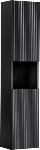 Słupek łazienkowy NOVA BLACK D 80-03-2D dwudrzwiowy z półkami Szafka łazienkowa NOVA BLACK 80-03-2D to doskonałe rozwiązanie dla osób ceniących elegancję i funkcjonalność w swojej łazience. Ta wisząca szafka zachwyca nowoczesnym wyglądem, który doskonale wpisuje się w trendy współczesnych wnętrz. Czarne ryflowane fronty z płyty MDF nadają szafce wyjątkowego charakteru, dzięki czemu staje się ona eleganckim akcentem każdej łazienki. Dwudrzwiowa szafka z kolekcji mebli modułowych NOVA stanowi perfekcyjne połączenie nowoczesnego designu z praktycznym zastosowaniem. Szafka oferuje mnóstwo miejsca do przechowywania, dzięki czemu w łatwy sposób zachowasz ład i porządek w swojej łazience. Każda z półek może wytrzymać obciążenie do 5 kg, co pozwala na wygodne przechowywanie różnorodnych kosmetyków i akcesoriów łazienkowych. Wykonana z wysokiej jakości materiałów, takich jak fronty z płyty MDF oraz trwały korpus z płyty laminowanej, które są odporne na wilgoć i uszkodzenia mechaniczne, co jest kluczowe w warunkach łazienkowych. Czarne, eleganckie wykończenie dodaje łazience szyku i klasy, a frezowany pochwyt oraz zawiasy z cichym domykiem sprawiają, że korzystanie z niej jest wyjątkowo komfortowe. Wysoki słupek świetnie łączy się z innymi modelami i kolorami mebli z kolekcji NOVA, co umożliwia stworzenie spersonalizowanego zestawu mebli łazienkowych. Szeroki wybór modeli pozwala na dopasowanie mebli do indywidualnych potrzeb i preferencji, tworząc spójną i harmonijną aranżację łazienki. Szafkę możesz zamówić również w wersji z dodatkową półką Qubik w kolorze naturalnego dębu widoczną na zdjęciu aranżacyjnym, dostępną w opcjach dodatkowych. Ta dodatkowa półka doskonale wpasuje się w otwartą przestrzeń szafki, tworząc wyjątkową kompozycję. Szafka NOVA BLACK 80-03-2D wyróżnia się ponadczasową formą, która nigdy nie wyjdzie z mody. Jej klasyczna, ale jednocześnie nowoczesna estetyka sprawia, że będzie wyglądać stylowo przez wiele lat. Cechy produktu: wysoka szafka wisząca, szafka dwudrzwiowa, korpus 16 mm płyta laminowana, fronty z płyty MDF 16 mm, kolor czarny, ryflowane fronty, frezowane uchwyty, w opcji dodatkowej regał Qubik w kolorze naturalnego dębu, możliwość zamontowania drzwi na prawo lub lewo, cichy domyk, max. obciążenie półek po 5 kg, do samodzielnego montażu, w swojej ofercie posiadamy szeroki wybór mebli pozwalających na kompleksowe wyposażenie mieszkania.
