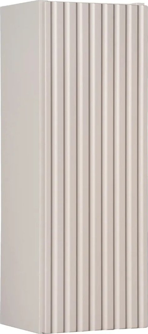 Wąska szafka łazienkowa NOVA CASHMERE 83-20-1D z ryflowanym frontem Szafka łazienkowa NOVA CASHMERE 83-20-1D to elegancki, wiszący mebel, który wyróżnia się nowoczesnym frontem z poziomymi ryflowaniami, nadającymi jej trójwymiarowy efekt. Kaszmirowy kolor szafki wprowadza do wnętrza subtelną elegancję, a dzięki swojej wiszącej konstrukcji optymalizuje wykorzystanie przestrzeni, idealnie harmonizując z innymi elementami kolekcji. Korpus szafki wykonany jest z płyty laminowanej, a front z płyty MDF, co zapewnia jej trwałość oraz odporność na wilgoć – niezwykle istotną w łazience. Szafka oferuje dodatkowe miejsce na kosmetyki i akcesoria, pomagając utrzymać porządek. Wewnątrz znajdują się praktyczne półki, które ułatwiają organizację przedmiotów. Drzwiczki szafki można zamontować po prawej lub lewej stronie, w zależności od indywidualnych preferencji. Frezowany pochwyt zapewnia wygodne otwieranie i jednolity wygląd mebla, a zawiasy z cichym domykiem gwarantują komfort użytkowania, eliminując trzaskanie drzwiczkami. Szafka łazienkowa NOVA CASHMERE 83-20-1D w zestawieniu z innymi meblami z kolekcji NOVA tworzy przestrzeń, w której poranne przygotowania stają się szybkie i sprawne, a wieczorne chwile relaksu są wyjątkowo przyjemne. Cechy produktu: górna szafka łazienkowa, jednodrzwiowa szafka wisząca z półkami, korpus 16 mm płyta laminowana, fronty z płyty MDF 16 mm, kolor kaszmirowy, ozdobny ryflowany front, frezowany pochwyt, zawiasy z cichym domykiem, możliwość montażu drzwiczek na prawo lub lewo, do samodzielnego montażu, w swojej ofercie posiadamy szeroki wybór mebli pozwalających na kompleksowe wyposażenie mieszkania.