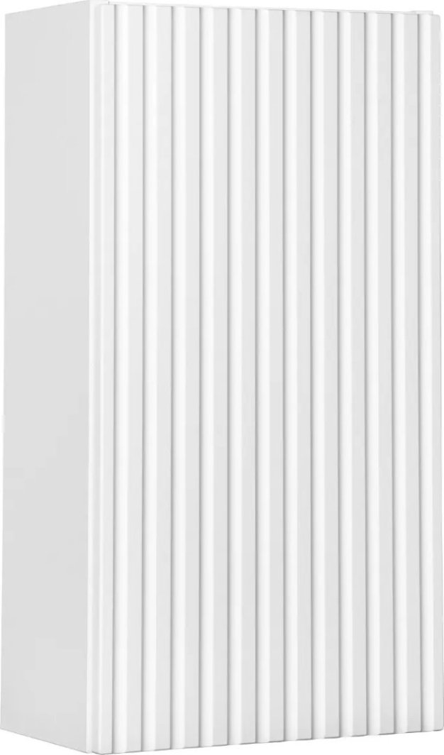 Wąska szafka łazienkowa NOVA WHITE 83-30-1D z ryflowanym frontem Szafka łazienkowa NOVA WHITE 83-30-1D to nowoczesny, wiszący mebel, który wyróżnia się designerskim, białym frontem z poziomymi ryflowaniami, tworzącymi trójwymiarowy efekt. Dzięki swojej wiszącej konstrukcji maksymalizuje wykorzystanie przestrzeni, idealnie komponując się z pozostałymi elementami kolekcji. Nadaje łazience funkcjonalny i wyrafinowany charakter. Korpus szafki wykonany jest z płyty laminowanej, a front z płyty MDF, co zapewnia trwałość oraz odporność na wilgoć – kluczową cechę w łazienkowych warunkach. Szafka oferuje dodatkowe miejsce na kosmetyki i akcesoria, pomagając w utrzymaniu porządku. Wewnątrz znajdują się praktyczne półki, ułatwiające organizację. Front szafki można zamontować po prawej lub lewej stronie, w zależności od indywidualnych potrzeb. Frezowany pochwyt zapewnia łatwe otwieranie i jednolity wygląd mebla, a zawiasy z cichym domykiem gwarantują komfort użytkowania bez trzaskania drzwiczkami. Szafka łazienkowa NOVA WHITE 83-30-1D w połączeniu z innymi meblami z kolekcji NOVA, tworzy przestrzeń, w której poranne przygotowania i wieczorne chwile będą wyjątkowe. Cechy produktu: górna szafka łazienkowa, jednodrzwiowa szafka wisząca z półkami, korpus 16 mm płyta laminowana, fronty z płyty MDF 16 mm, kolor biały, ozdobny ryflowany front, frezowany pochwyt, zawiasy z cichym domykiem, możliwość montażu drzwiczek na prawo lub lewo, do samodzielnego montażu, w swojej ofercie posiadamy szeroki wybór mebli pozwalających na kompleksowe wyposażenie mieszkania.