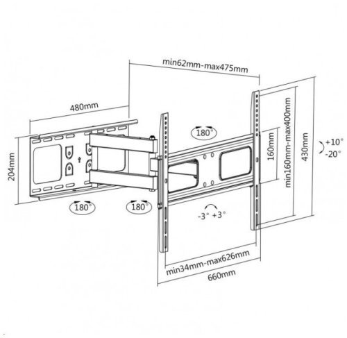 CONNECT IT Nástěnný držák TV T3BK s dvojitým ramenem, naklápěcí (±10/20°/±90°, 37" - 70", max. 50kg), bílá