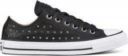Klasyczne trampki Converse z krótką cholewką w nieco odważniejszej wersji. Cholewka z ćwiekami, wykonana ze skóry premium. Komfort i świeżość dzięki wkładce OrthoLite. Charakterystyczna dla trampek gumowa osłona na palce. Odporna na uszkodzenia podeszwa z wulkanizowanej gumy. Logowanie producenta na języku i na pięcie.