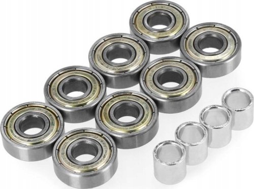 W zestawie znajduje się 8 łożysk, co wystarcza na jedną parę rolek. Dodatkowo, dołączone tulejki dystansowe ułatwiają montaż i zapewniają stabilność. To wszystko sprawia, że łożyska CoolSlide ABEC 5 to doskonały wybór dla każdego, kto pragnie poprawić wydajność swoich rolek.