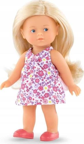 Corolline Lalka Rosy Blond 20cm Cechy produktu: ✔️jest wykonana z miękkiego w dotyku winylu i ma delikatny zapach wanilii ✔️lalka ma długie, jedwabiste blond włosy, które ułatwiają stylizację ✔️ubrana jest w kwiecistą sukienkę, majtki i pasujące buty