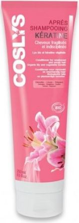 Odżywka naprawcza z keratyną marki Coslys przeznaczona jest do włłosów osłabionych, zniszczonych, trudnych w układaniu się. Dzięki roślinnej keratynie i ceramidom odbudowuje włókno włosa oraz dodaje witalności i połysku nawet najbardziej kruchym włosom. Włosy stają gładkie, miękkie i są odpowiednio chronione przed szkodliwym działaniem suszarki czy prostownicy.