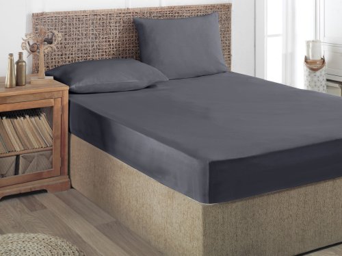 Cotton fitted sheet CREYA ANTHRACITE, 180x200+25cm, grey, 100% cotton
