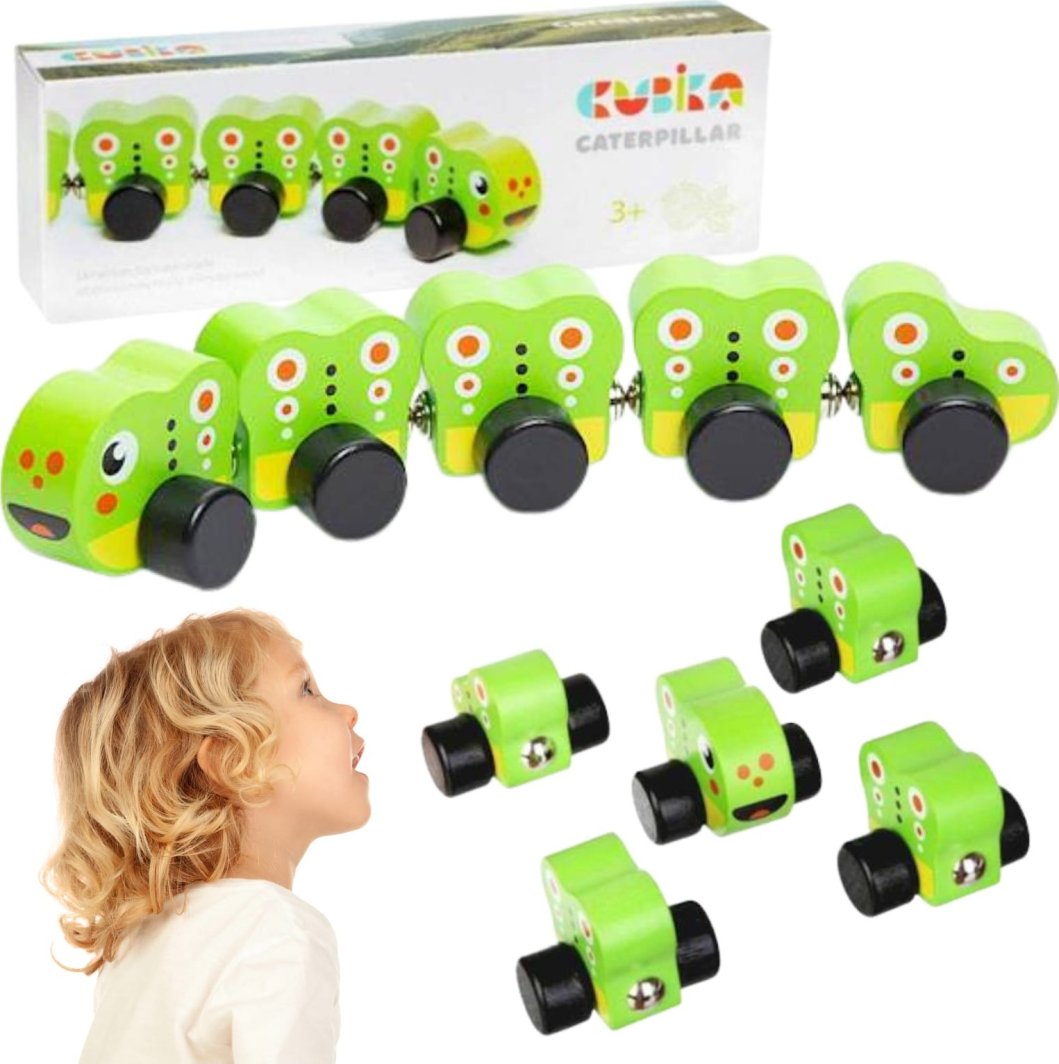Cubika DREWNIANA GĄSIENICA Z MAGNESAMI ZESTAW PIĘĆ ELEMENTÓW ZABAWKA EDUKACYJNA