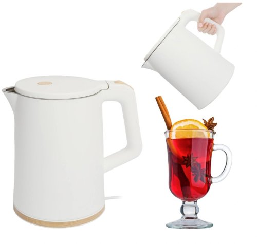 Czajnik wykonany jest z wysokiej jakości materiałów, w tym stali szlachetnej, co zapewnia trwałość i estetyczny wygląd. Obudowa z podwójnej ścianki z polipropylenu gwarantuje lepszą izolację, co zwiększa komfort użytkowania.
