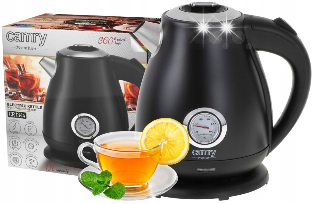 Czajnik Camry Czajnik elektryczny bezprzewodowy metalowy z termometrem 1,7L 2200W czarny