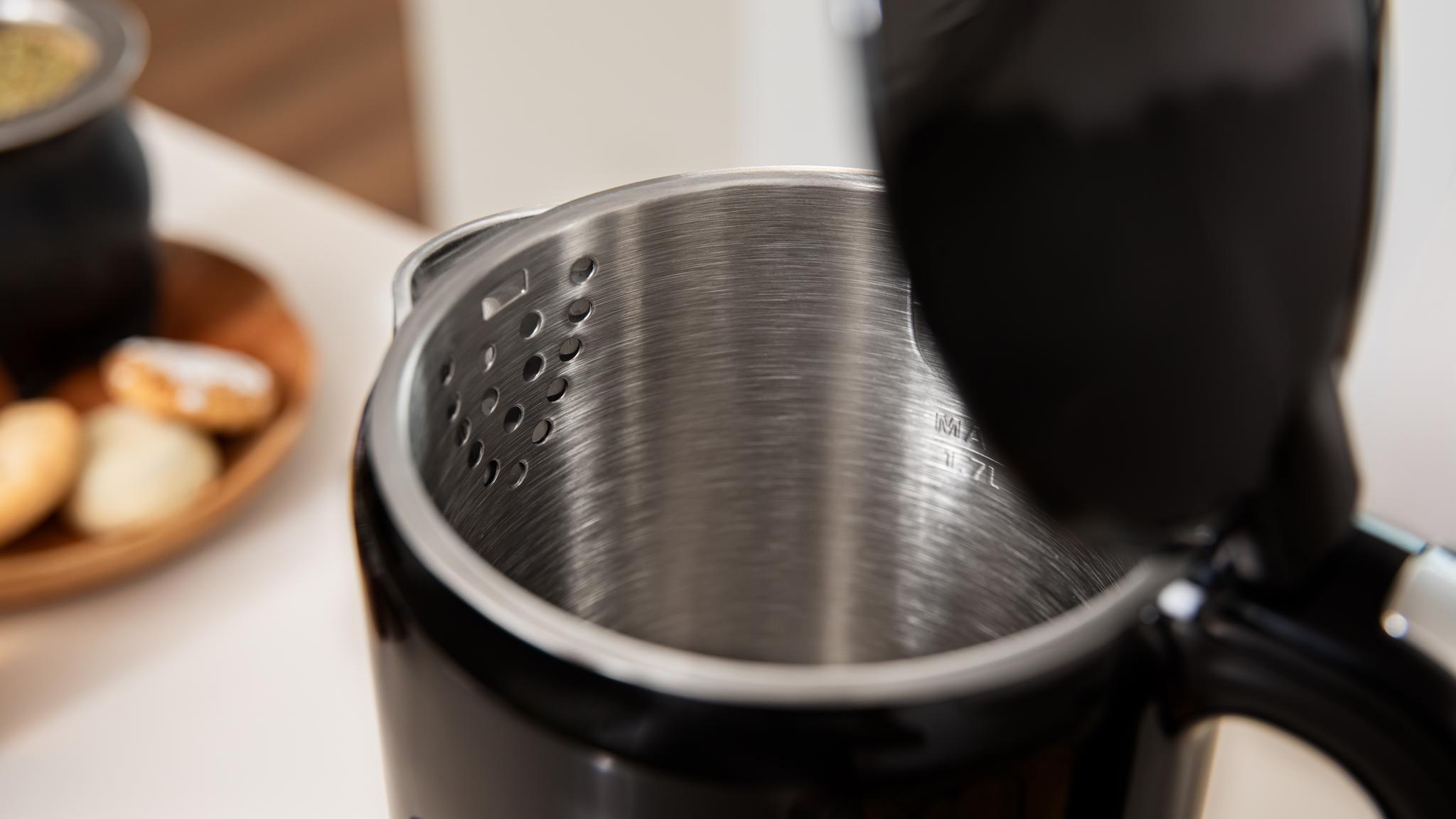 Wnętrze czajnika zostało wykonane ze stali nierdzewnej, co gwarantuje długą żywotność urządzenia oraz wygodne i higieniczne czyszczenie.