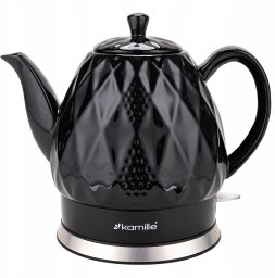 Czajnik elektryczny bezprzewodowy Kamille KM-1728 to doskonałe połączenie stylu i użyteczności, które wzbogaci każdą kuchnię. Jego ceramiczna konstrukcja w eleganckim czarnym kolorze nie tylko przyciąga wzrok, ale także zapewnia naturalny smak wody, eliminując niepożądane zapachy i posmak plastiku. Z pojemnością 1,5 litra, czajnik idealnie nadaje się do codziennego użytku, umożliwiając przygotowanie kilku filiżanek herbaty lub kawy jednocześnie.