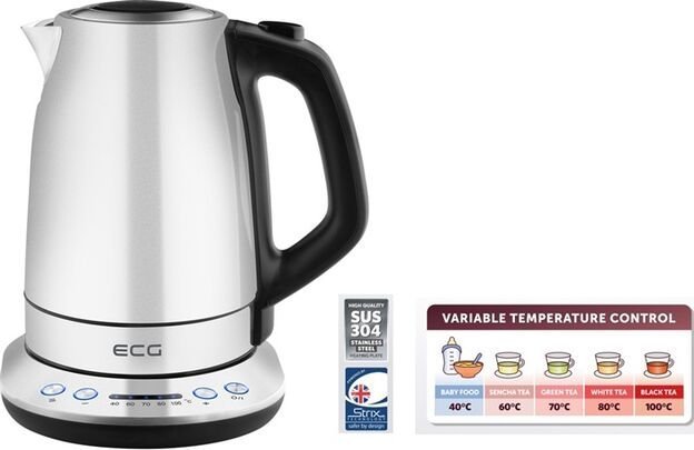 Czajnik ECG RK 1791 oferuje możliwość regulacji temperatury w zakresie od 40 do 100 stopni Celsjusza. Dzięki temu możesz przygotować idealną herbatę, a także dostosować temperaturę wody do przygotowania kaszki dla niemowląt.