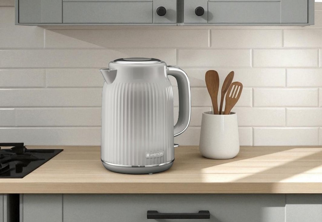 Dodaj elegancji i funkcjonalności swojej kuchni z czajnikiem elektrycznym Ambition Electro z kolekcji Vintage. Ten wyjątkowy czajnik w szarym, matowym wykończeniu z delikatnym pionowym żłobieniem to połączenie ponadczasowego stylu retro z nowoczesnymi rozwiązaniami technologicznymi. Idealnie wkomponuje się zarówno w nowoczesną kuchnię, jak i wnętrza w stylu royal kitchen czy glamour.