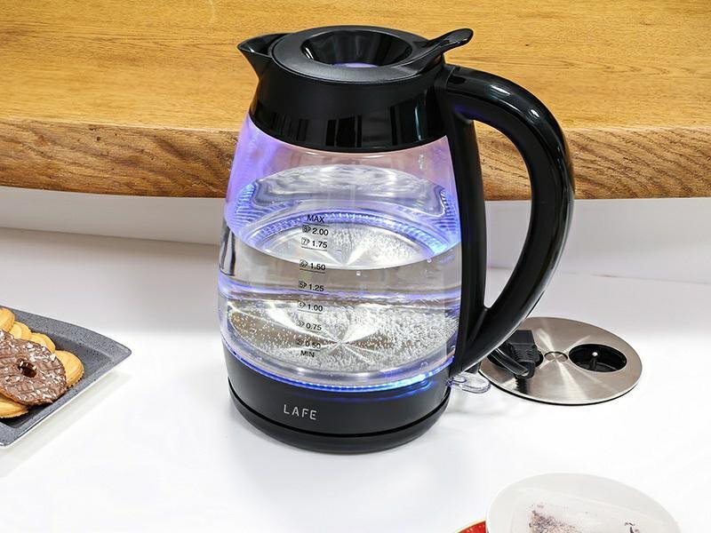 Czajnik elektryczny Lafe Essential XL to eleganckie i funkcjonalne urządzenie, które zapewni Ci szybkie i wygodne gotowanie wody. Dzięki dużej pojemności, wytrzymałemu szklanemu dzbankowi i nowoczesnym funkcjom, idealnie sprawdzi się w każdym domu, biurze czy kuchni. duża pojemność: 2 L dzbanek wykonany z wytrzymałego szkła podświetlenie wskaźnika poziomu wody auto-wyłączenie bez wody automatyczny wyłącznik moc Max: 2200 W funkcja wlewania wody bez otwierania pokrywki Duża pojemność 2 L – gotowanie wody dla całej rodziny Czajnik Lafe Essential XL oferuje pojemność aż 2 litrów, co sprawia, że doskonale nadaje się do gotowania większych ilości wody jednocześnie. Idealny do przygotowywania herbaty czy kawy dla rodziny, gości lub w biurze, gdzie potrzebujesz szybko zagotować większą ilość wody. Wysokiej jakości szklany dzbanek – elegancja i wytrzymałość