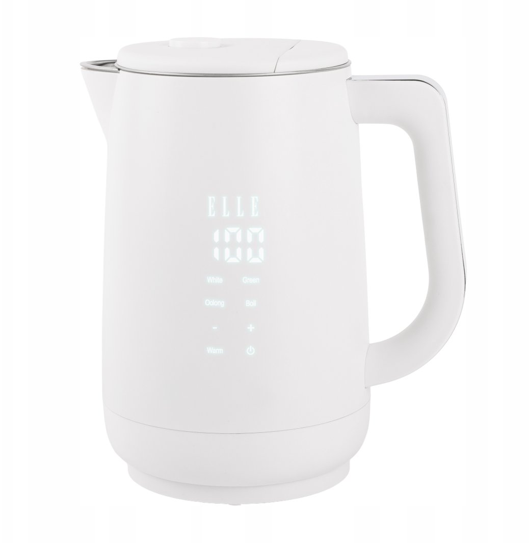 Elegancki, biały kolor czajnika ELLE Panache oraz nowoczesny wyświetlacz cyfrowy sprawiają, że jest on nie tylko praktycznym urządzeniem, ale również stylowym dodatkiem do każdej kuchni. Jego minimalistyczny design z pewnością przyciągnie uwagę i doda uroku Twojemu wnętrzu.