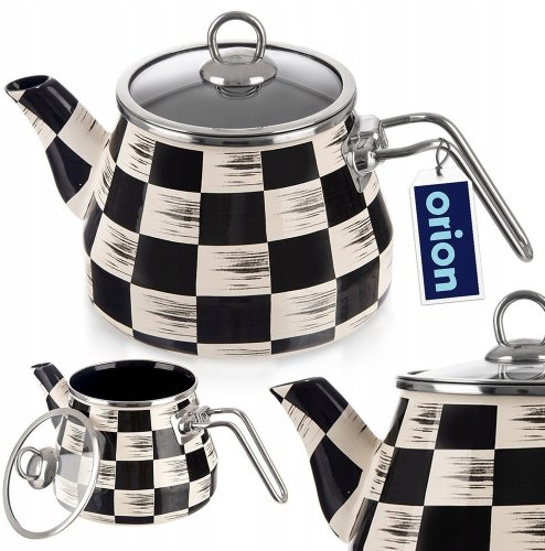 Czajnik Emaliowany ORION SZACHOWNICA 2 L ze Szklaną Pokrywką Indukcja