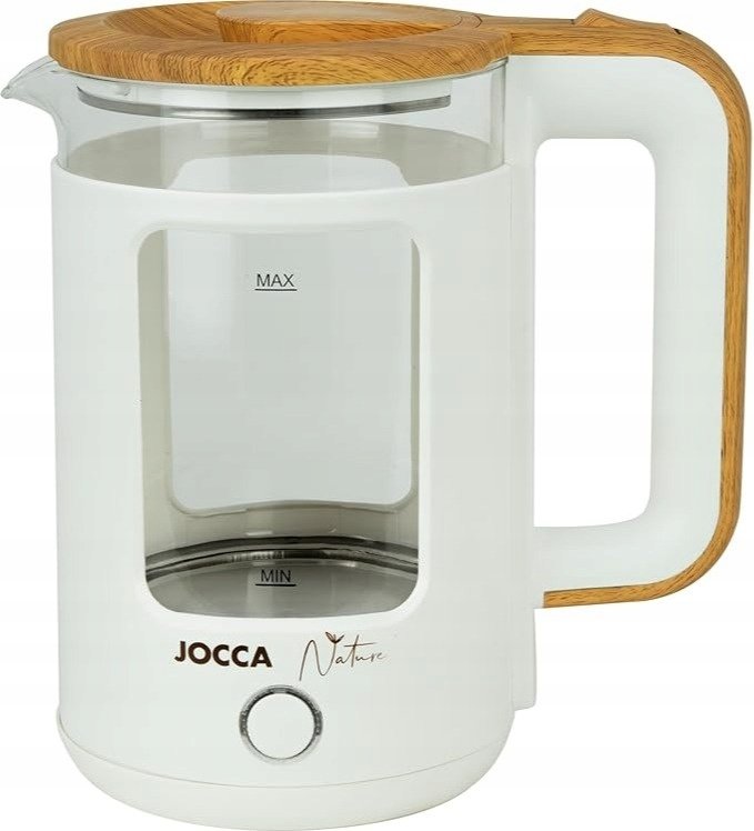 Czajnik elektryczny Jocca o pojemności 1,8 L to idealne połączenie stylu i użyteczności, które z pewnością wzbogaci każdą kuchnię. Jego nowoczesny, biały design z drewnianymi akcentami sprawia, że jest nie tylko praktycznym urządzeniem, ale także eleganckim elementem wystroju.