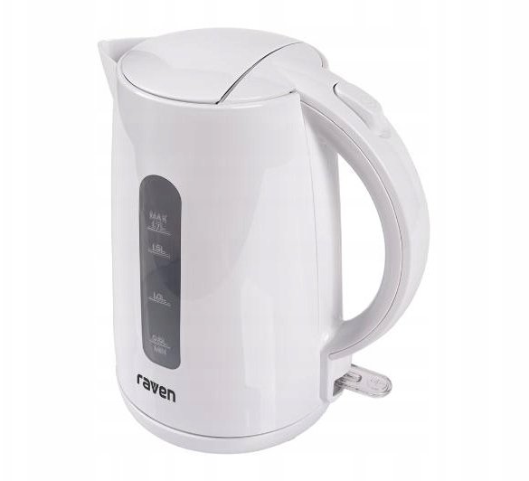 Czajnik elektryczny RAVEN EC021 wyróżnia się eleganckim, białym kolorem oraz materiałami wysokiej jakości, co sprawia, że doskonale wpisuje się w nowoczesne wnętrza kuchenne. Jego minimalistyczny wygląd doda stylu każdemu pomieszczeniu.