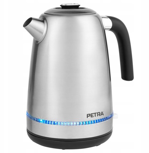 Czajnik Petra PT5557VDE wyposażony jest w podświetlenie LED, które nie tylko nadaje mu nowoczesny wygląd, ale także informuje o stanie gotowania. Niebieski pasek LED włącza się podczas gotowania, co jest zarówno estetyczne, jak i praktyczne.