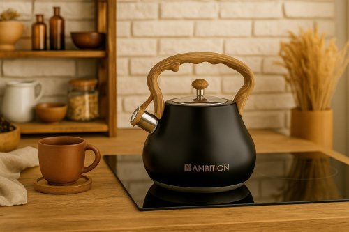 „Czajnik stalowy Ambition Flavio 2 l z gwizdkiem – elegancki, trwały i bezpieczny. Odpowiedni na indukcję, gaz, ceramikę i kuchenkę elektryczną.”