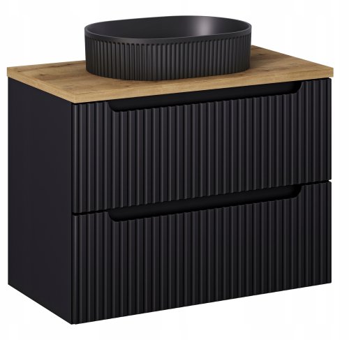 CZARNA szafka łazienkowa z szufladami NOVA BLACK z umywalką i blat OAK 80cm