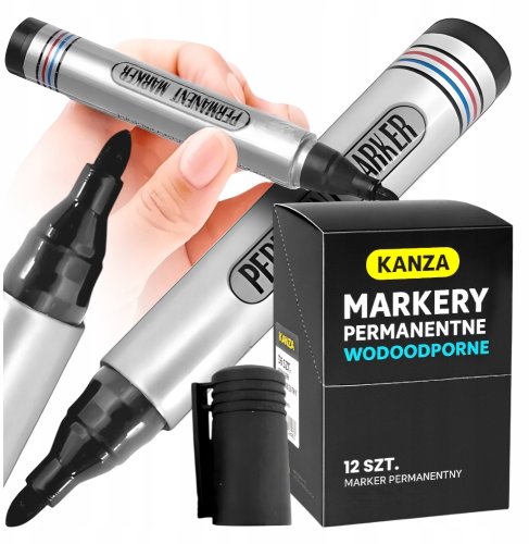 Zestaw 12 czarnych markerów permanentnych KANZA to doskonałe rozwiązanie do biura, szkoły, warsztatu czy domu. Dzięki intensywnej pigmentacji i wszechstronności, pisanie po różnych powierzchniach staje się łatwe i komfortowe. Markery są odporne na wodę, trwałe i gotowe na każde wyzwanie.