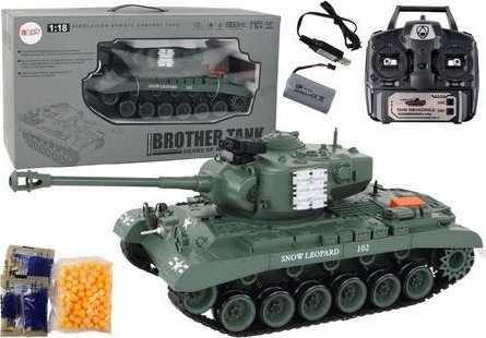 Czołg Leopard RC Zdalnie Sterowany Armata 1:18 Szary Nasz czołg w skali 1:18 to niezwykle szczegółowa zabawka militarna. Sterowanie czołgiem odbywa się za pomocą pilota, który umożliwia pełną kontrolę nad pojazdem. Jest zasilany akumulatorowo, co gwarantuje zabawę na długi czas. Zaprojektowany z ogromną dbałością o detale, ten czołg pokonuje przeszkody, obraca wieżę o 360 stopni i unosi lufę do 30 stopni. W zestawie znajdziesz kulki wodne do armaty. co pozwala na realne strzelanie. Oprócz tego, zestaw zawiera dwie bronie i żołnierza. Czołg wykonany jest z wysokiej jakości tworzywa, co gwarantuje trwałość i bezpieczną zabawę. To idealna zabawka dla młodych miłośników militariów, których zachwyci nie tylko funkcjonalność, ale i dokładność wykonania. Elementy zestawu: - czołg - pilot - akumulator - kabel do akumulatora - żołnierz - 2 bronie - kulki- 6 mm -kulki wodne - instrukcja Częstotliwość pilota: 2,4G Wymiary czołgu: 32 cm x 16 cm x 17 cm Wymiary pilota: 16,5 cm x 4 cm x 15 cm Wymiary opakowania: 53 cm x 28 cm x 28,5 cm Posiada certyfikat CE, ponadto jest zgodny z normą EN71. Zabawka przeznaczona jest dla dzieci powyżej 14 roku życia.