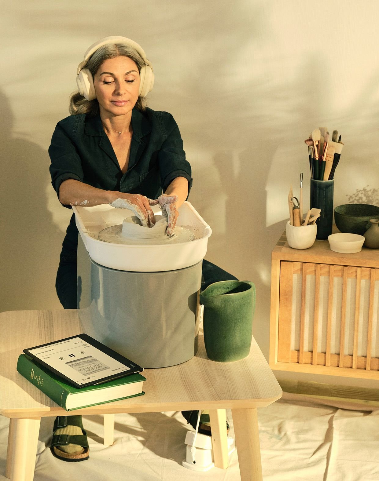 Zainspiruj się, odpocznij od pracy i uwolnij kreatywność, słuchając audiobooków Kobo. Sparuj swoje urządzenie Kobo Elipsa 2E z słuchawkami, głośnikami lub odtwarzaczem samochodowym z bezprzewodową technologią Bluetooth®.