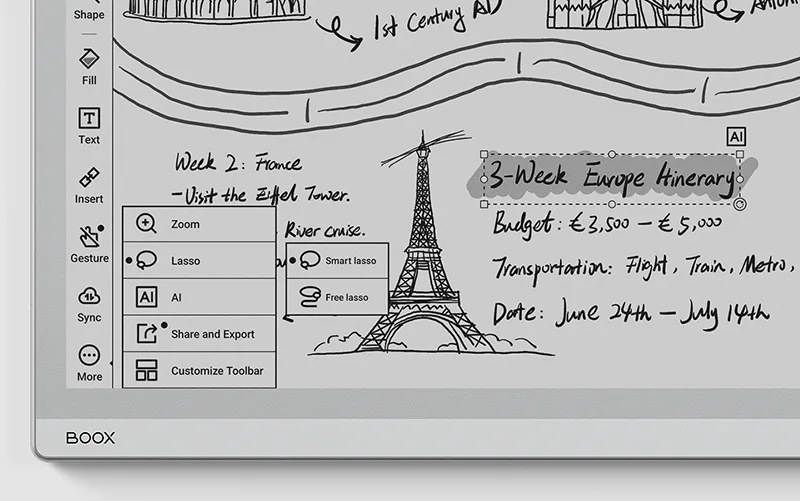 Onyx Boox Go 10.3 oferuje wiele szablonów, które mogą wspierać Twoje plany i myśli. Importuj własne szablony, aby uczynić treści jeszcze bardziej unikalnymi.
