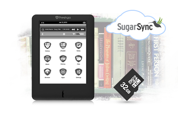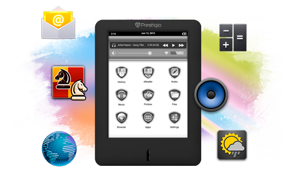 Nowy czytnik Prestigio MultiReader 5364 wykorzystuje innowacyjną technologię stanowiącą połączenie tego, co najlepsze. 6-calowy ekran Multi-Touch sprawia wrażenie książki papierowej, a platforma Android umożliwia pobieranie e-booków bezpośrednio na urządzenie za pośrednictwem sieci Wi-Fi i korzystanie z wielu uprzednio zainstalowanych aplikacji. Pośród nich znajdziesz popularną aplikację Prestigio eReader, która zapewnia dostęp do ponad 620 000 książek w 24 językach (w tym 30 000 spośród nich całkowicie darmowych), oraz aplikację SugarSync udostępniającą dodatkowe 5 GB wolnej przestrzeni w chmurze uzupełniającej 4 GB pamięci wewnętrznej – istnieje również możliwość powiększenia miejsca na dysku poprzez kartę pamięci.