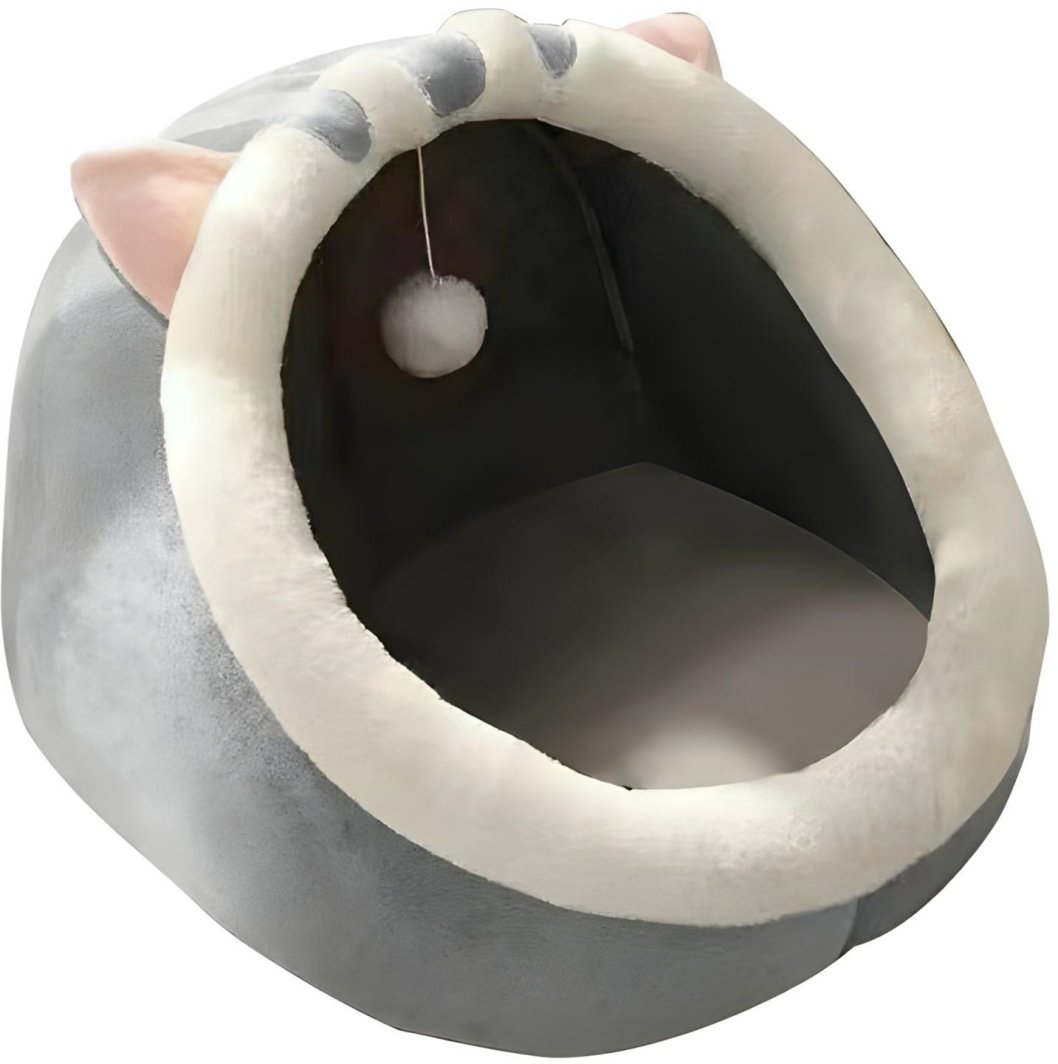 Legowisko wyróżnia się niebanalnym designem z kocimi uszami, co sprawia, że doskonale wpisuje się w każde wnętrze. Jego szary odcień czyni je uniwersalnym, pasującym do różnych stylów aranżacji, a jednocześnie przyciąga uwagę swoim oryginalnym wyglądem.