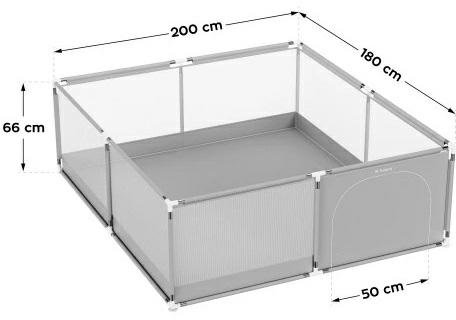Kojec wyposażony jest w wzmocnioną siatkę 360°, co zapewnia pełną widoczność oraz wentylację. Dzięki temu rodzice mogą na bieżąco obserwować swoje dzieci, a jednocześnie zapewnić im komfortowe warunki do zabawy.