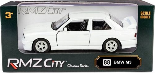 Model metalowy DIE CAST METAL - RMZ CITY BMW M3 E30 (1986-1991) biały, skala 1:32.Posiada napęd pull-back oraz otwierane drzwi, przez które można zajrzeć do wnętrza samochodu. Metalowy pojazd z elementami plastikowymi wykonany z najwyższą starannością z materiałów wysokiej jakości. Miniaturowe spełnienie marzeń dzięki licencjonowanym modelom aut. Model spełni oczekiwania kolekcjonerów oraz dzieci podczas zabawy.