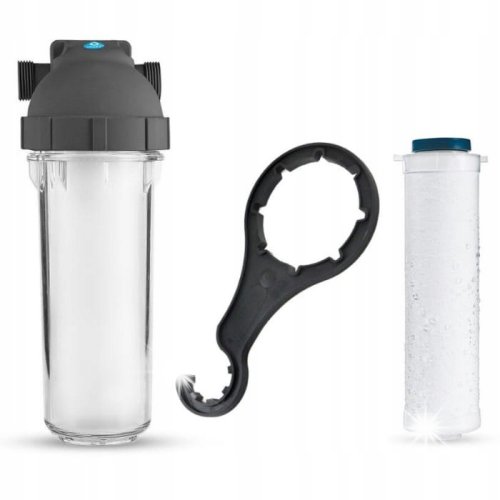 Obudowa filtra została zaprojektowana z myślą o łatwym montażu w domowej instalacji wodnej. Można ją instalować zarówno w poziomie, jak i w pionie, co ułatwia wymianę filtrów i zapewnia wygodę użytkowania.