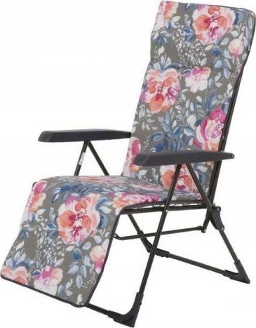 Fotel ogrodowy z podnóżkiem Fotel z podnóżkiem to bardzo praktyczny i wygodny fotel, który w każdej chwili można złożyć, dzięki czemu zajmuje mało miejsca. Świetnie sprawdzi się w ogrodzie jak również na plaży. Poduszka mocowana do stelaża za pomocą kieszeni w górnej części oparcia i paska z gumy w dolnej części siedziska. Niezwykle komfortowe i miękkie poduszki pozwolą Ci zatopić się w nich i rozkoszować się promieniami letniego słońca, wygodne podłokietniki dopełnią tę doskonałą konstrukcję. Posiada regulację oparcia, przez co jest bardzo praktyczny. Parametry: Kolor: wielokolorowy Linia: Torino Plus Materiał wykonania: stal Obszary zastosowania: do ogrodu, na plażę Posiada poduszkę w komplecie Wymiary poduszki: długość 158 cm, szerokość 48 cm, grubość 2,5/6 cm Wymiary rozłożonego leżaka: szerokość całkowita: 59 cm długość całkowita: 152 cm wysokość całkowita: 104 cm średnica rurki: 18 mm maksymalne obciążenie 110 kg