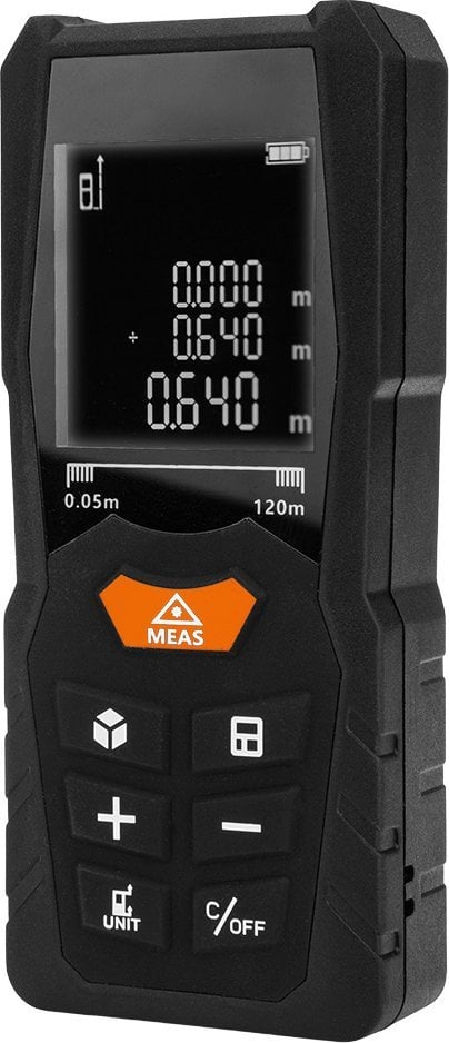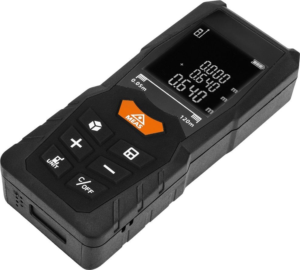 Dalmierz laserowy NEO TOOLS o zasięgu do 80 m to precyzyjne i wszechstronne narzędzie pomiarowe, idealne do różnych zastosowań budowlanych i geodezyjnych. Dzięki solidnej obudowie z certyfikatem IP54, jest odporny na pył i zachlapania, co sprawia, że doskonale sprawdza się w trudnych warunkach pracy. Dalmierz NEO TOOLS umożliwia pomiary odległości, pola powierzchni, objętości oraz korzystanie z funkcji Pitagorasa. Posiada również tryb pomiaru ciągłego, funkcję dodawania i odejmowania, a także pomiar minimalny i maksymalny. Urządzenie zapamiętuje ostatnie 50 pomiarów, ułatwiając analizę danych. Wyposażony w elektroniczny kątomierz (0-90°) oraz opcję pomiaru od początku lub końca urządzenia, dalmierz zapewnia pełną funkcjonalność podczas różnych sytuacji. Zasilany jest trzema bateriami AAA lub akumulatorami Ni-MH, a automatyczne wyłączanie lasera po 30 sekundach i dalmierza po 3 minutach oszczędza energię. W zestawie znajduje się pasek na nadgarstek, etui oraz instrukcja, co czyni ten dalmierz laserowy NEO TOOLS wygodnym i łatwym w użyciu.